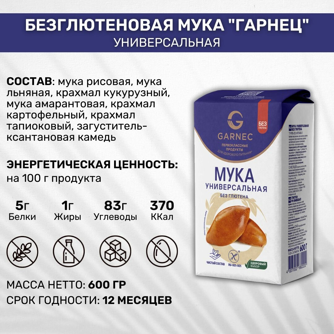 Мука без глютена Garnec Гарнец Универсальная 6 шт по 600г интересное: