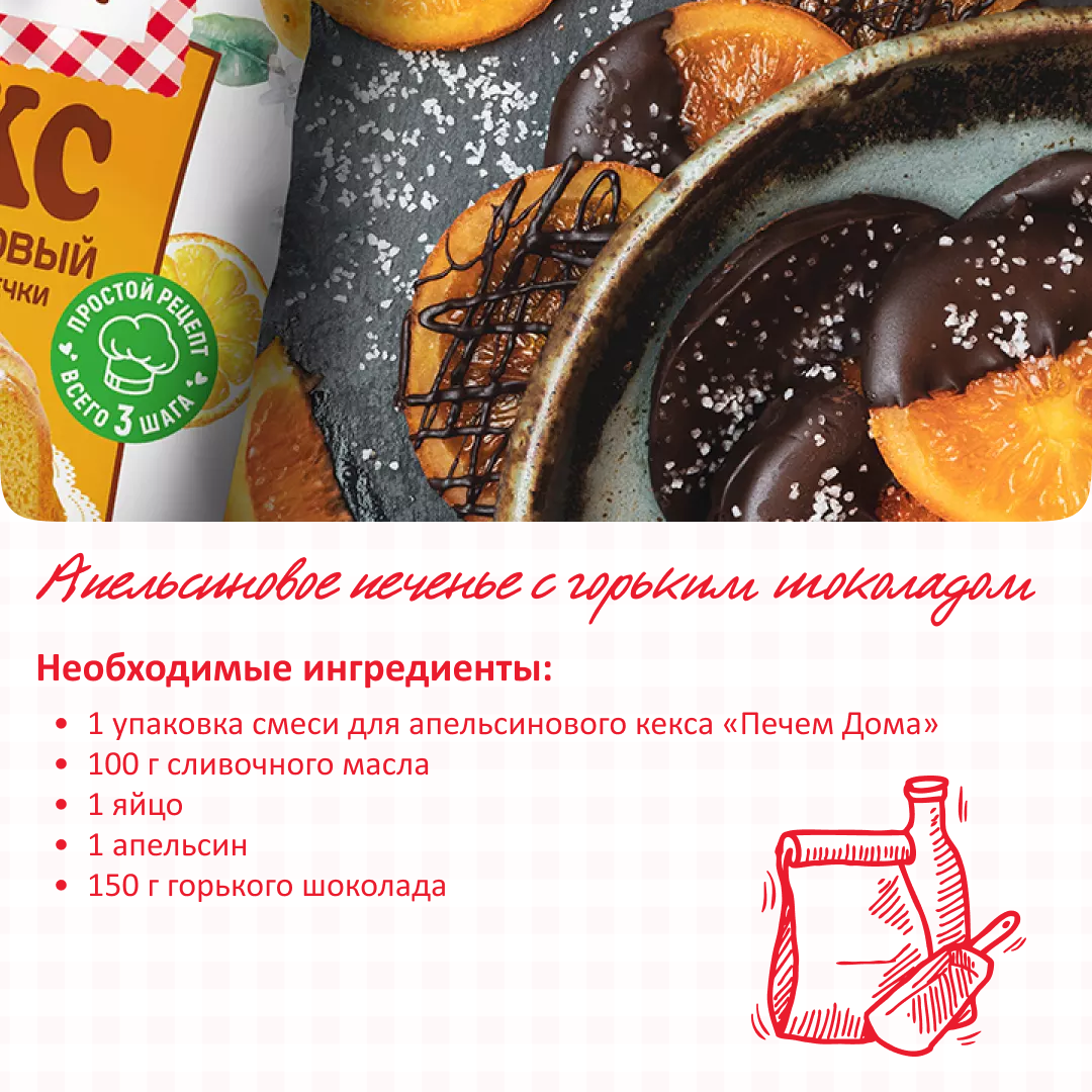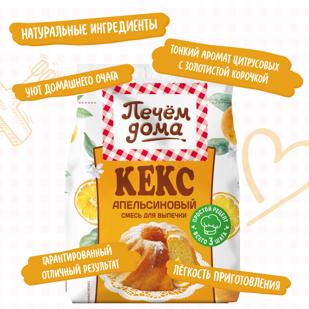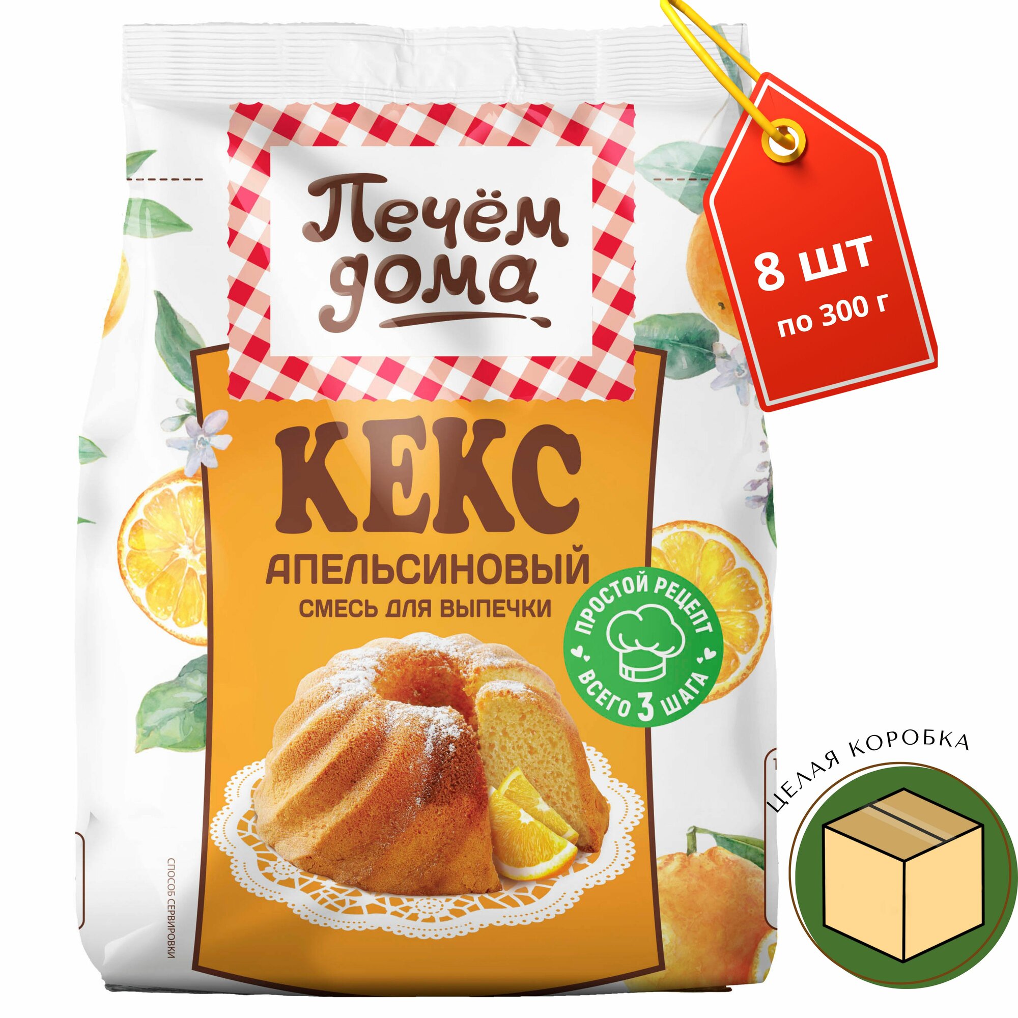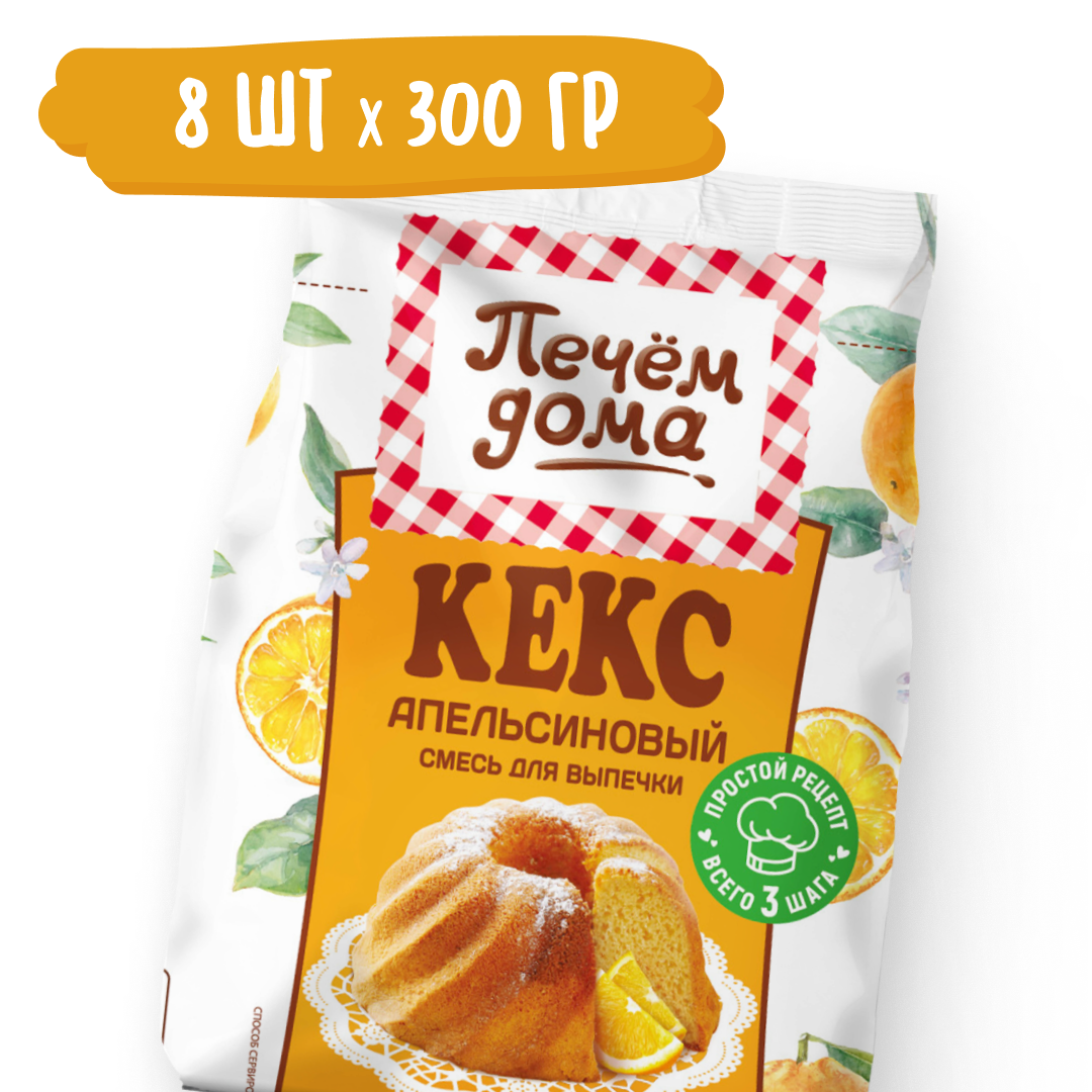 Упаковка из 8 пачек Кекс Печём дома Апельсиновый смесь для выпечки пакет 300г