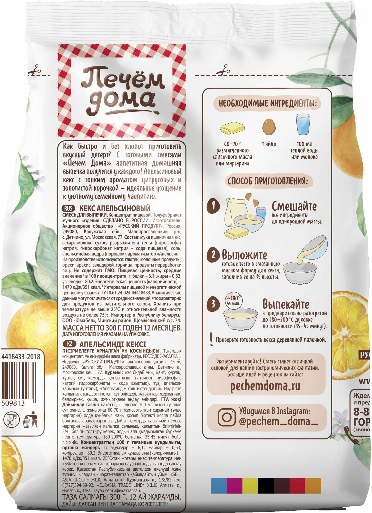 Смесь для выпечки Кекс Печем дома Апельсиновый 300 гр x 8 штук в коробке, Русский Продукт