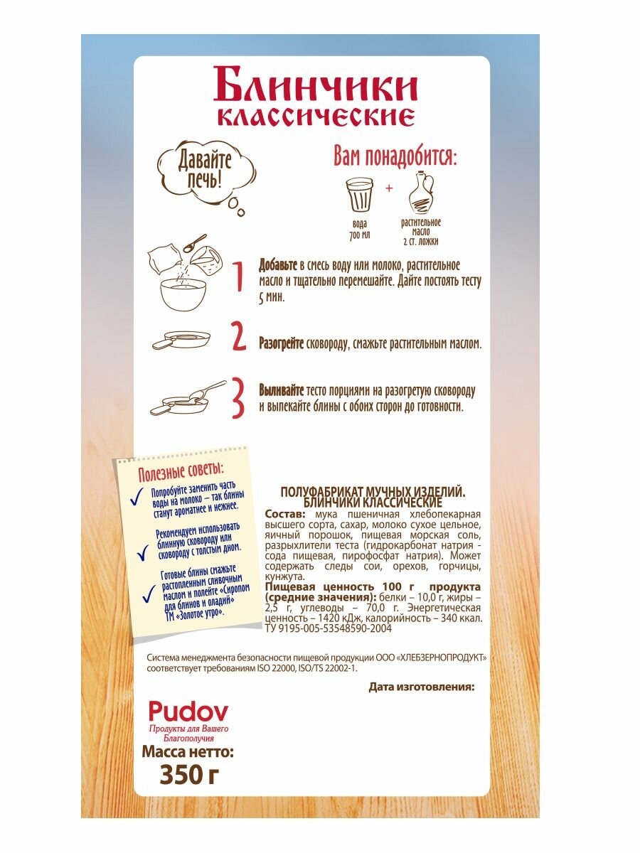 Готовая смесь для выпечки Блинчики классические, С.Пудовъ, 350 г интересное: