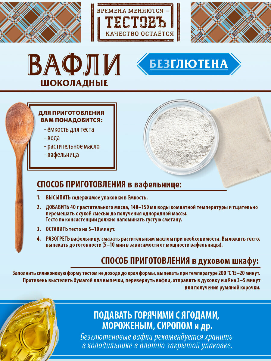 Смесь для выпечки тестовъ Вафли шоколадные без глютена 200 г интересное:
