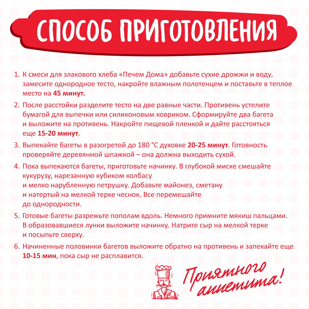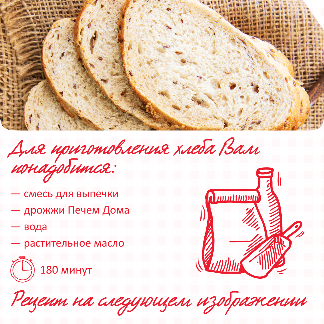 | Дополнительная информация | Свежий выпеченный злаковый хлеб "ПЕЧЕМ ДОМА" с хрустящей румяной корочкой и приятным ароматом станет прекрасным дополнением к любому блюду. |