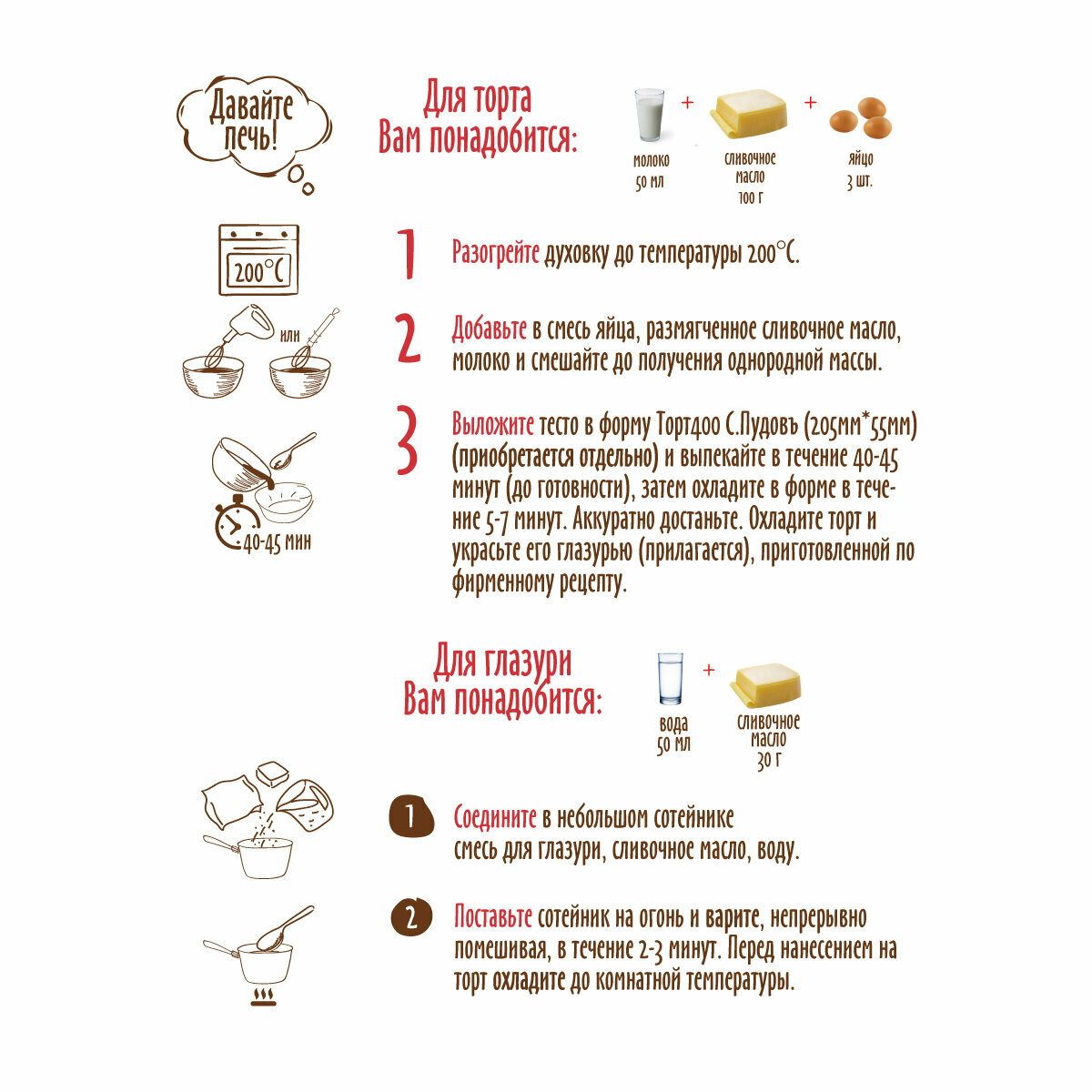 Набор " Шоколадный торт - Двойной шоколад" С.Пудовъ, 490 г (смесь для выпечки , шоколадная глазурь) интересное: