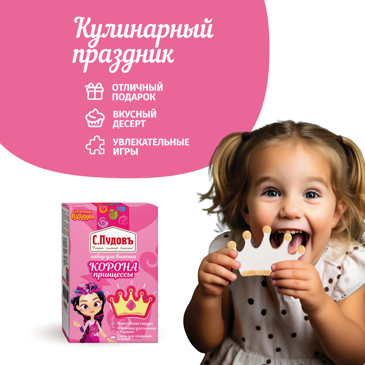 Купить Набор для выпечки печенья "Корона принцессы" Сказочный патруль С.Пудовъ, 0,411 кг (смесь, формочка, глазурь)