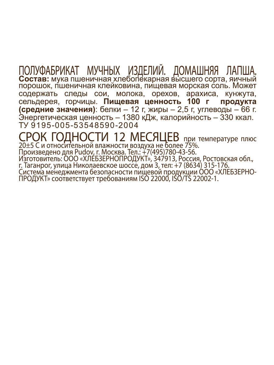 Домашняя лапша С.Пудовъ, 350 г