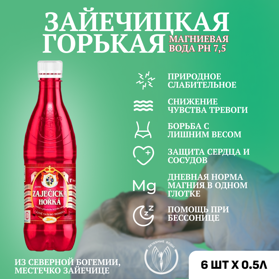 Минеральная негазированная лечебная вода Зайечицкая горькая (Zajecicka Horka) с магнием 0,5 л х 12 шт