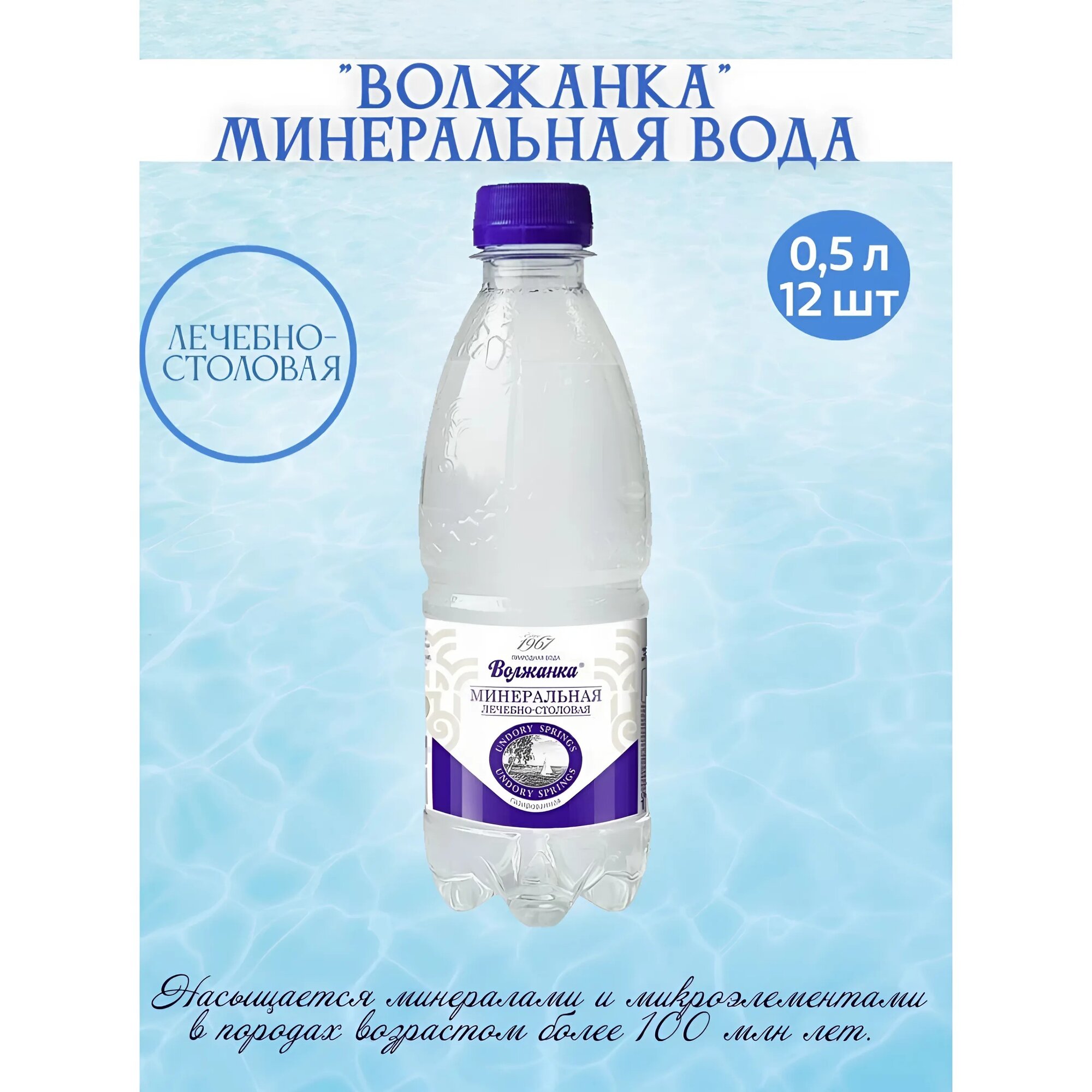Волжанка минеральная вода газированная, 0,5 л х 12 шт.