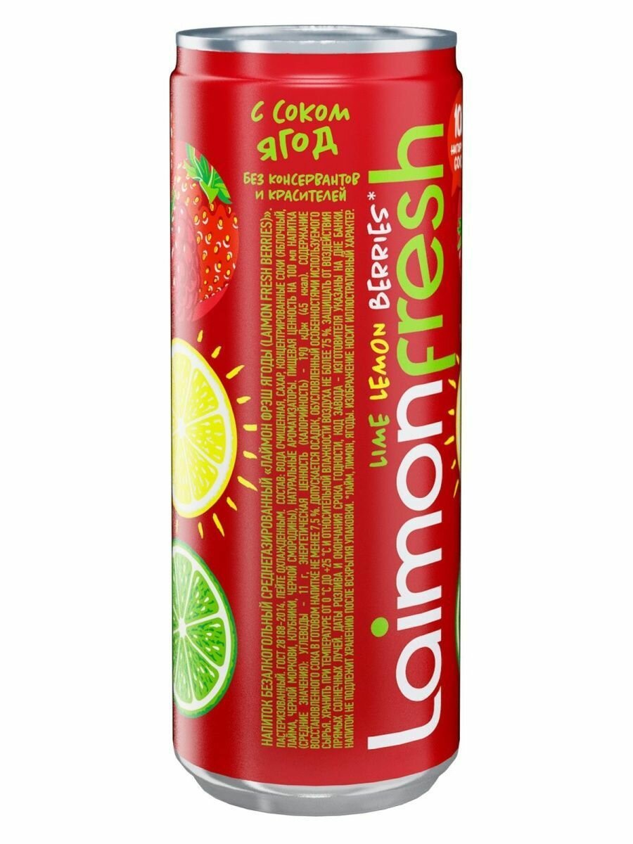 Напиток газированный Laimon Fresh Berries (Лаймон Фреш Ягоды), 12 шт. по 0,33л, ж/б интересное: