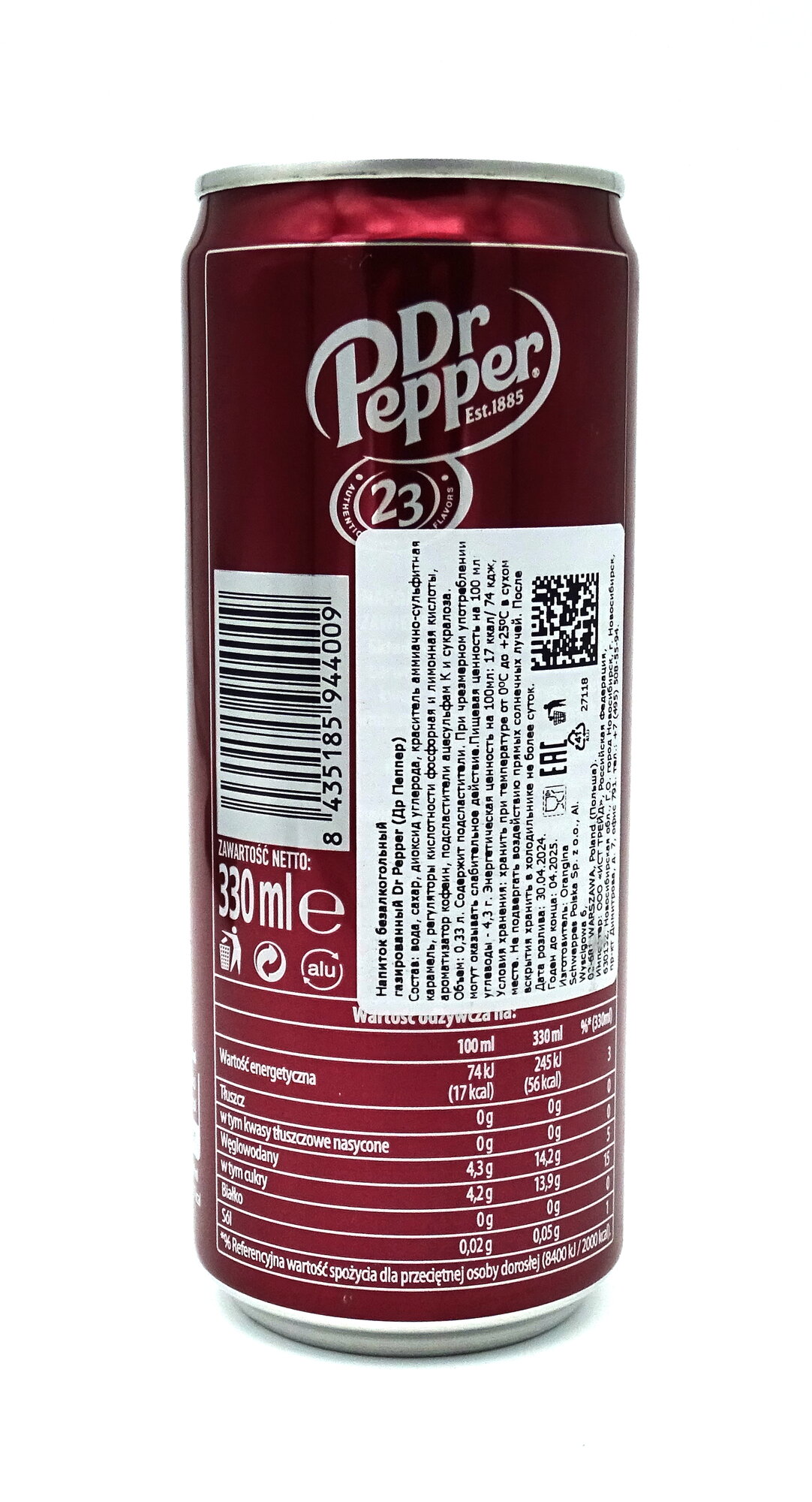 Газированный напиток Dr. Pepper (Доктор Пеппер) 0.33 л ж/б упаковка 12 штук (Польша) интересное: