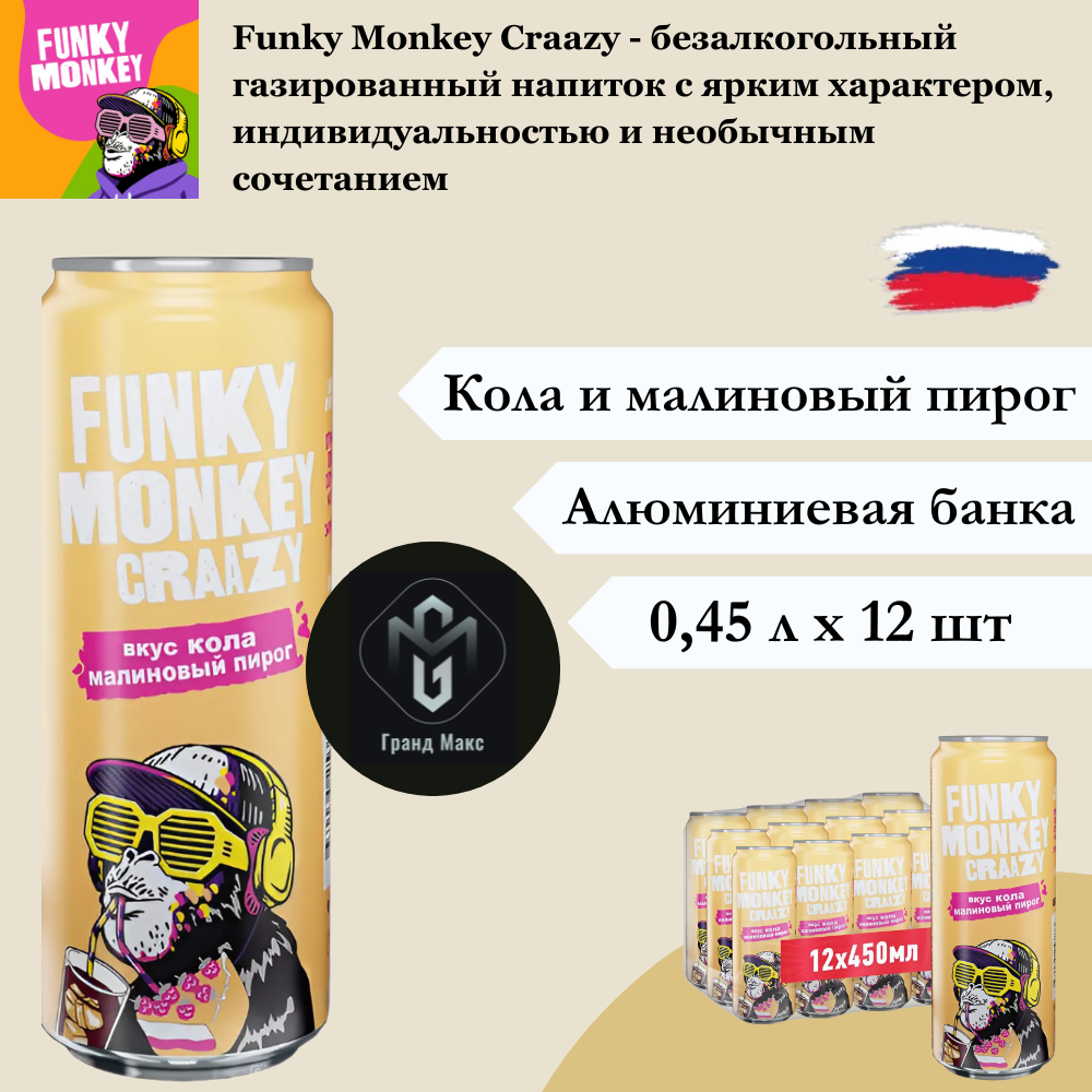 Купить Напиток газированный Funky Monkey (Фанки Манки) Craazy, Кола-Малиновый пирог, 0,45 л х 12 банок