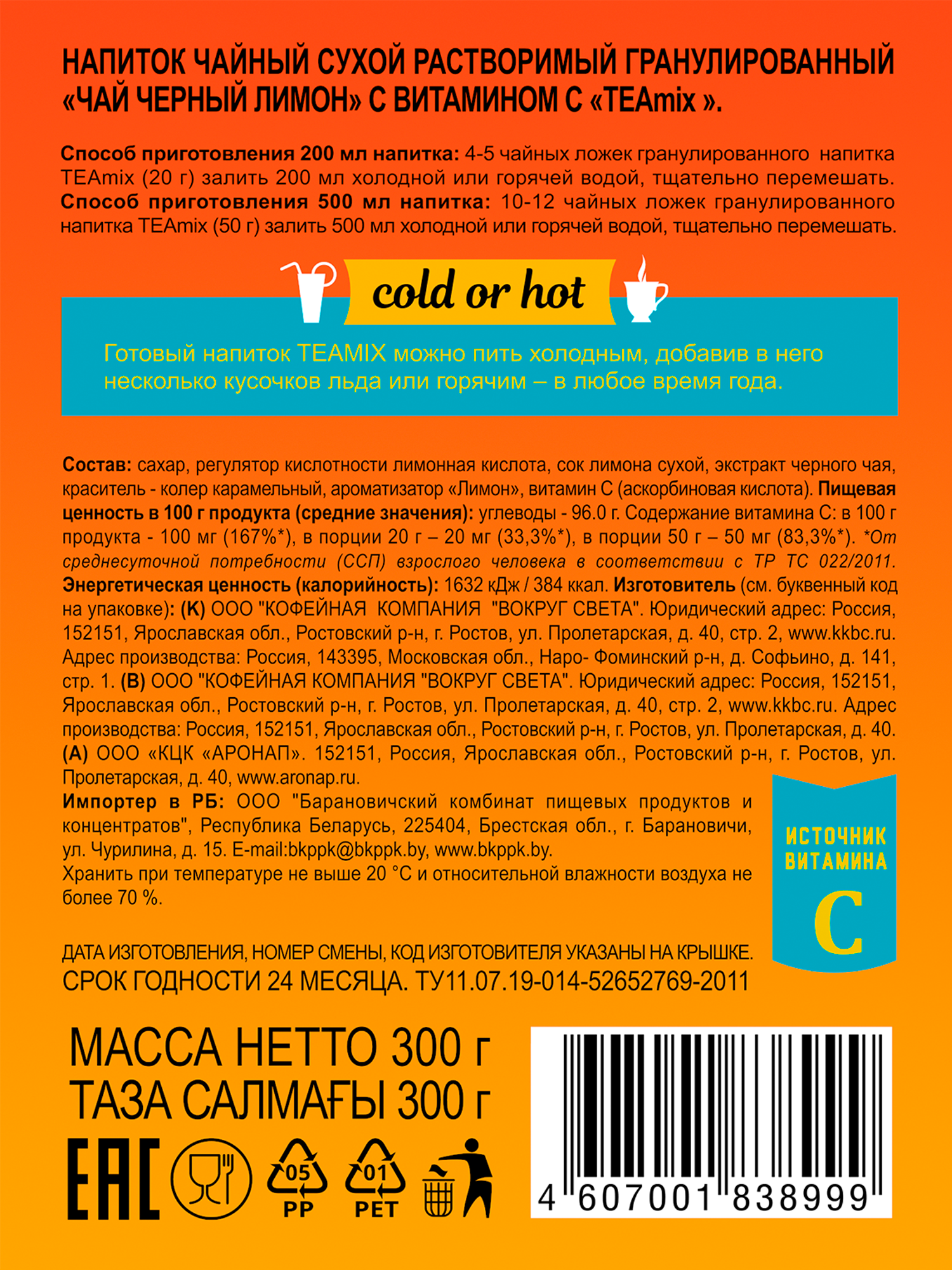 Напиток чайный растворимый TEAMIX гранулированный TEA MIX Черный чай с лимоном 300 г интересное: