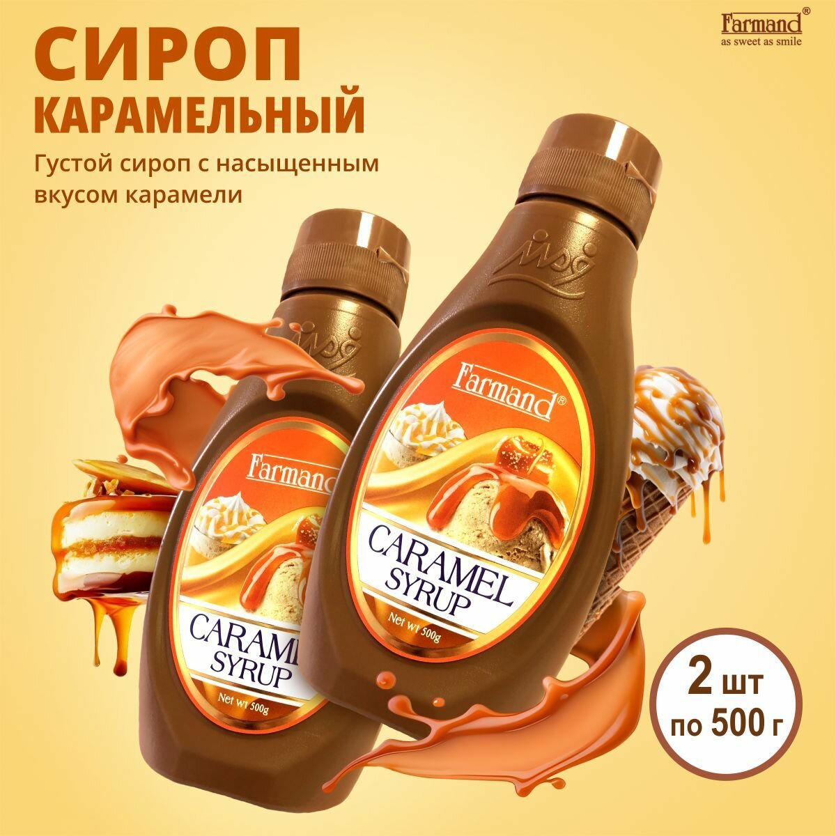 Набор сиропов/топпинг Карамель для кофе, десертов, коктейлей 2шт по 500гр - 1000гр