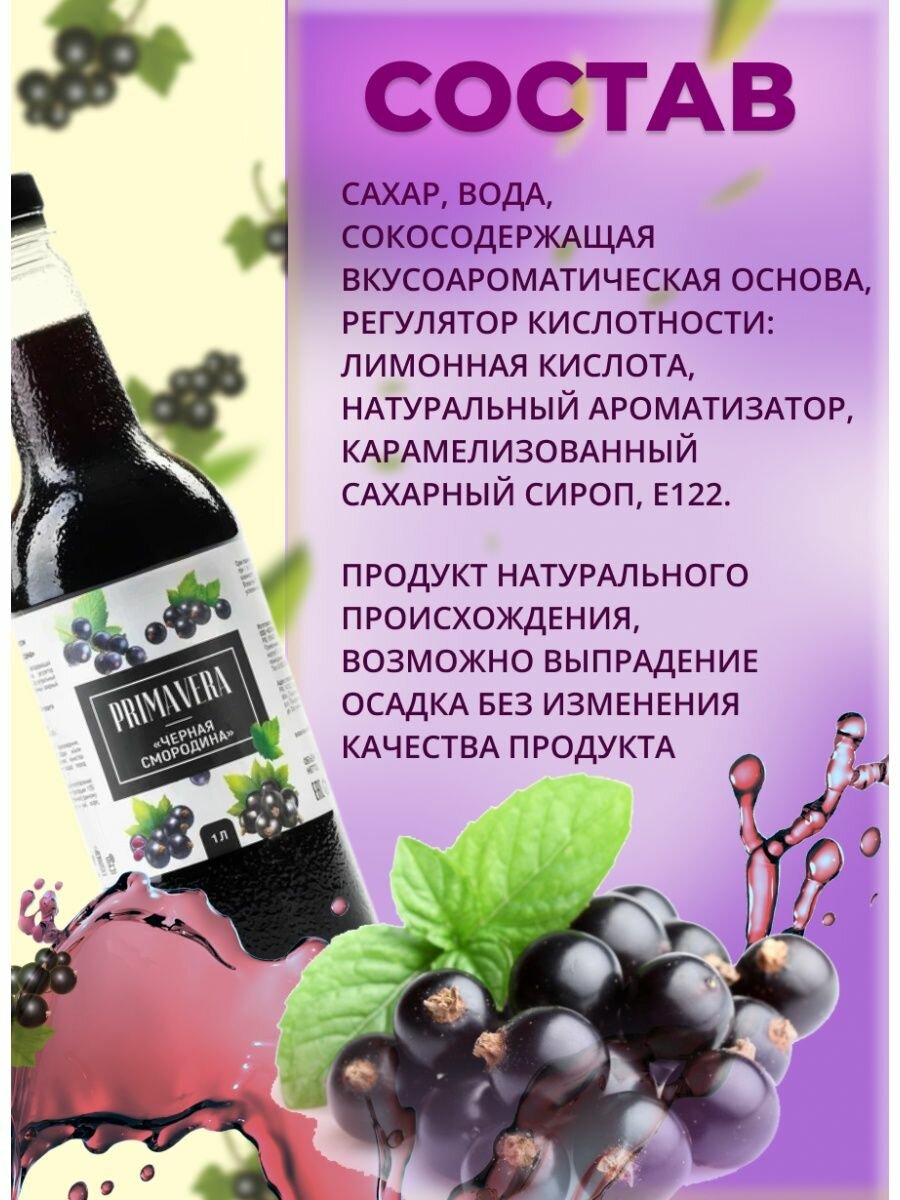 Сироп Barinoff Черная смородина (для коктейлей, десертов, лимонада и мороженого), 1л интересное: