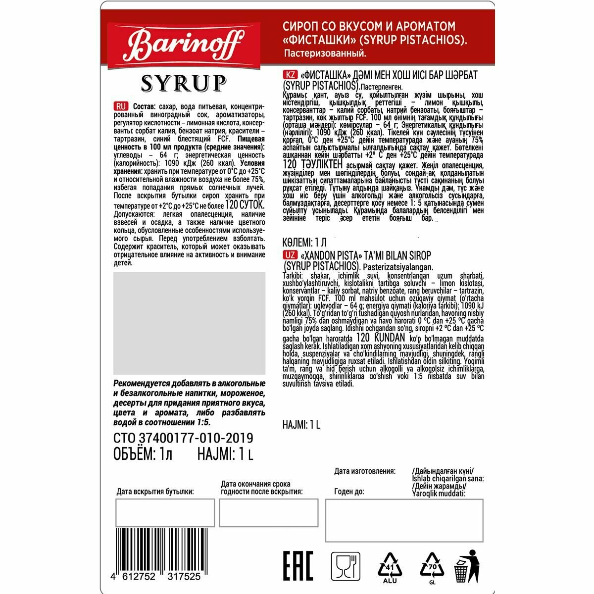 Купить Сироп Barinoff Фисташки (для кофе, коктейлей, десертов, лимонада и мороженого), 1л