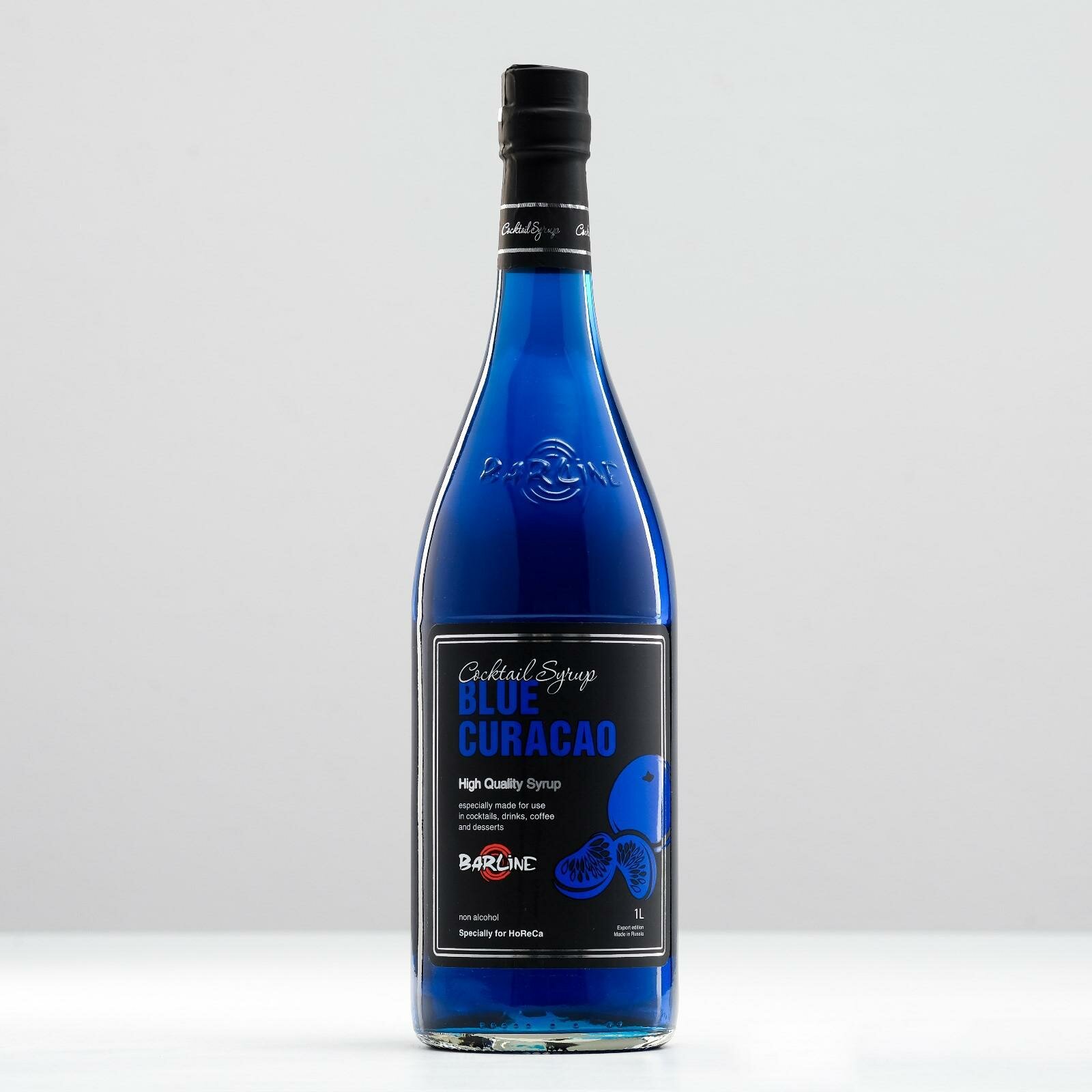 Сироп Barline Блю Кюрасао (Blue Curaсao), 1 л, для кофе, чая, коктейлей и десертов, стеклянная бутылка c рассекателем, Барлайн