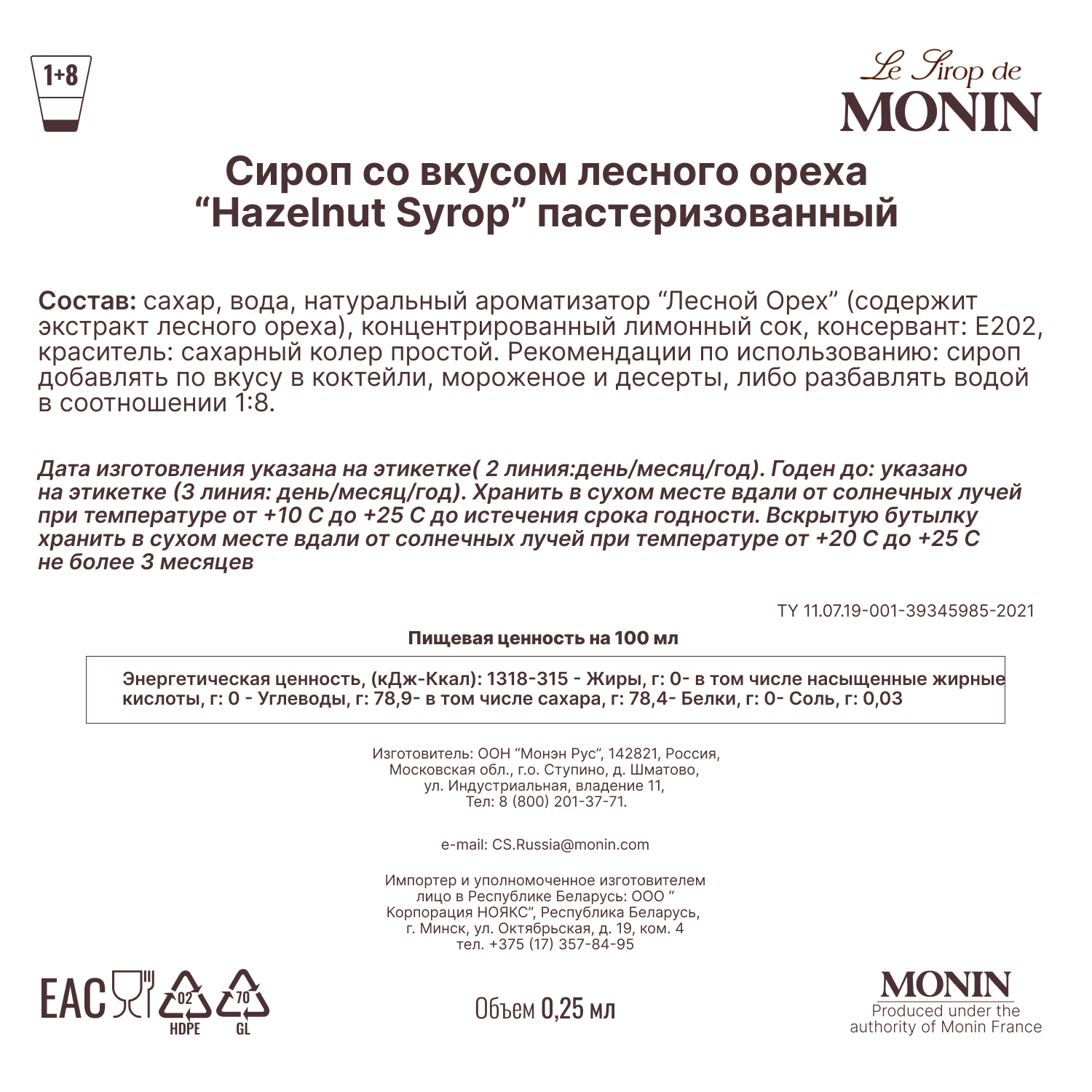 Сироп MONIN "Лесной орех", 250 мл. интересное: