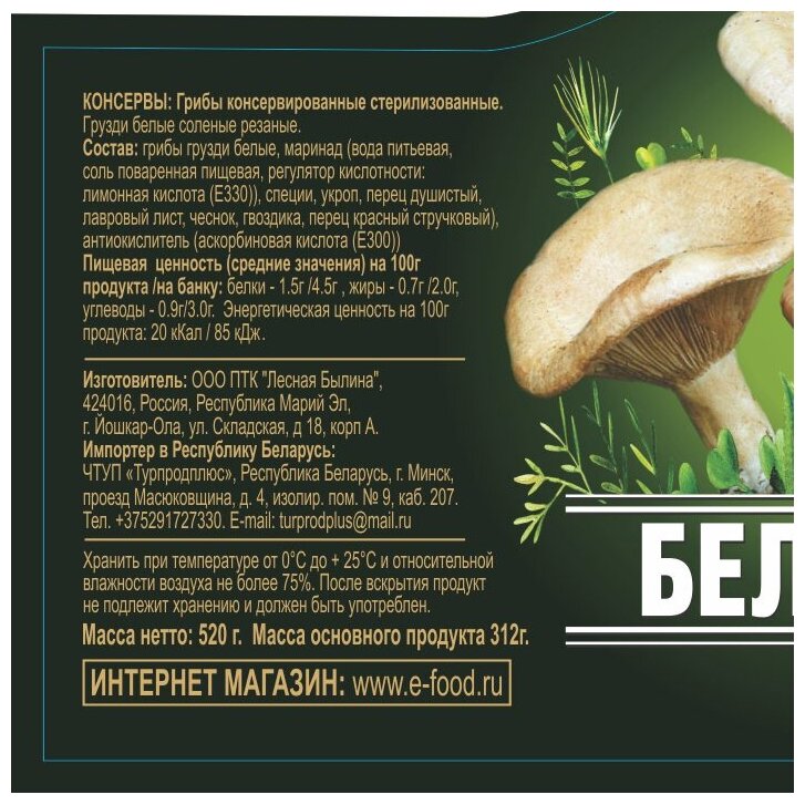 | Состав | грибы грузди белые, маринад (вода питьевая, соль поваренная пищевая, лимонная кислота, специи (укроп, перец душистый, лавровый лист, чеснок, гвоздика, перец красный стручковый), аскорбиновая кислота |