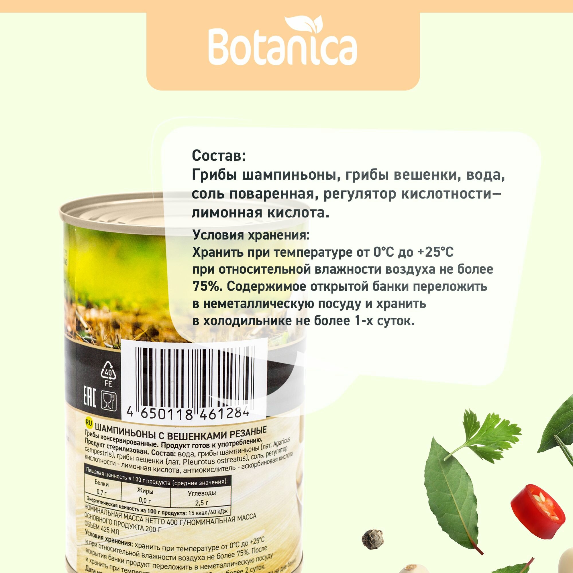 Грибы шампиньоны с вешенками резаные, Botanica, 425 мл интересное: