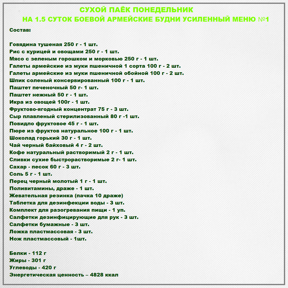 Сухпаек армейский понедельник суточный интересное: