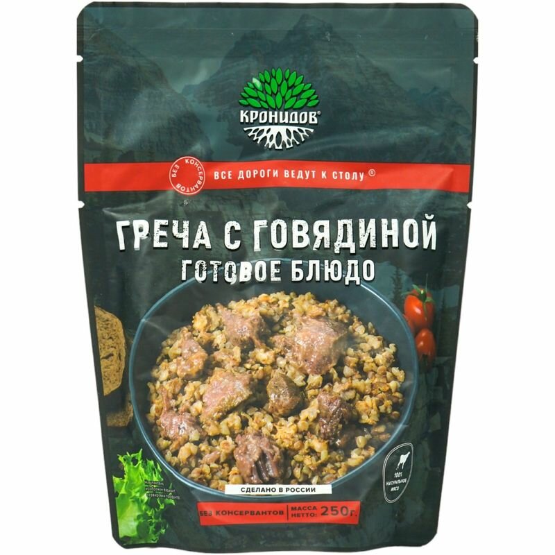 Кронидов Греча с говядиной Готовое блюдо в фольге. Консерва натуральная 250 г