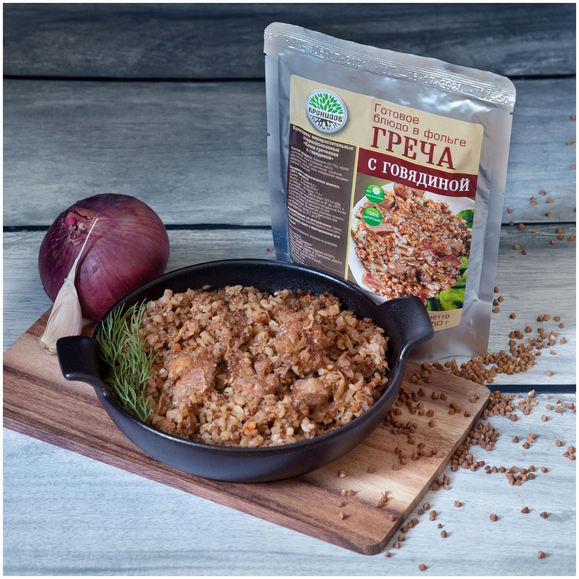 Готовое натуральное блюдо в фольге "Греча с говядиной" Кронидов Сухой паек для охоты, рыбалки, в поход Набор 5 шт. по 250 гр.
