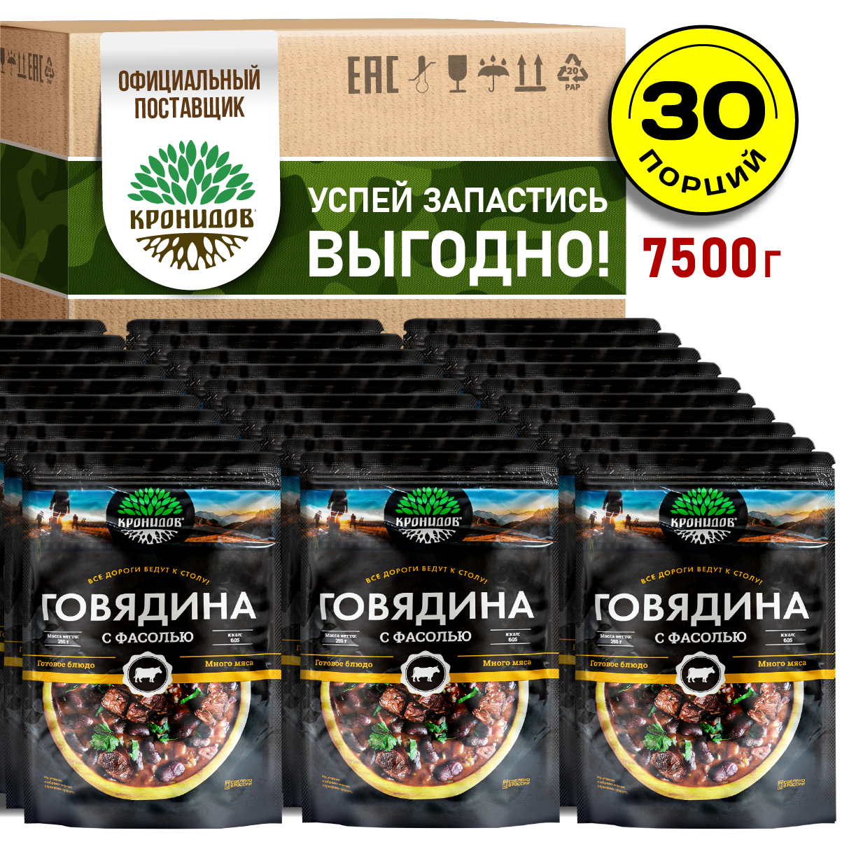 Готовое натуральное блюдо в реторт-пакете "Говядина с фасолью" Кронидов. Сухой паек для охоты, рыбалки, в поход Набор 30 шт. по 250 гр.