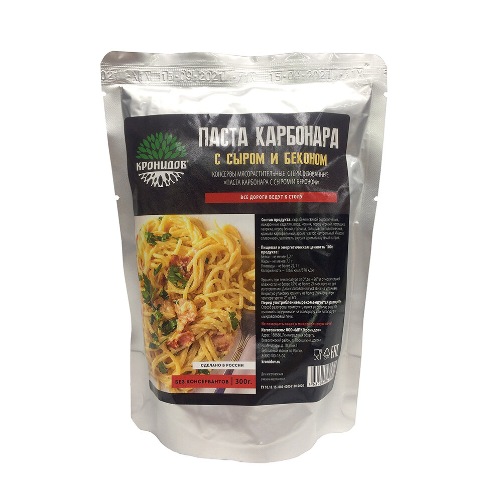 Паста карбонара с сыром и беконом Готовое блюдо в реторт-пакете ТМ Кронидов. Консерва Набор 15 шт. по 300 г