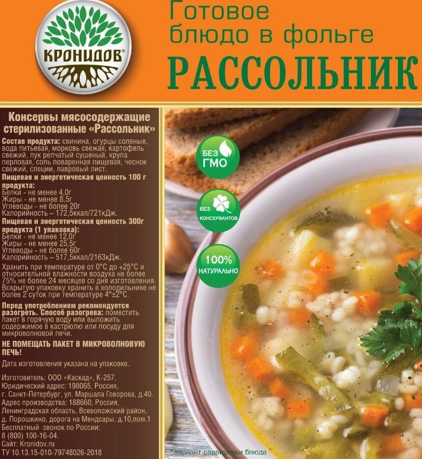 СохранитьРассольник Готовое блюдо в реторт-пакете ТМ Кронидов. Консерва 300 г интересное: