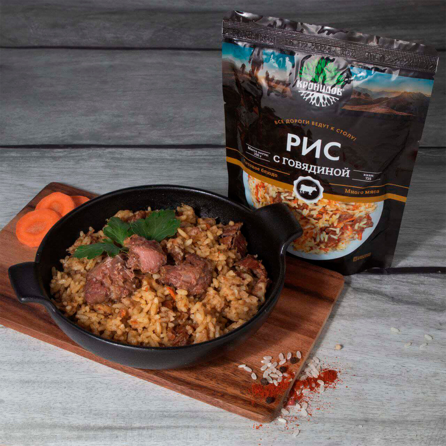 Готовое натуральное блюдо в реторт-пакете "Рис с говядиной" Кронидов Сухой паек для охоты, рыбалки, в поход Набор 4 шт. по 250 гр.