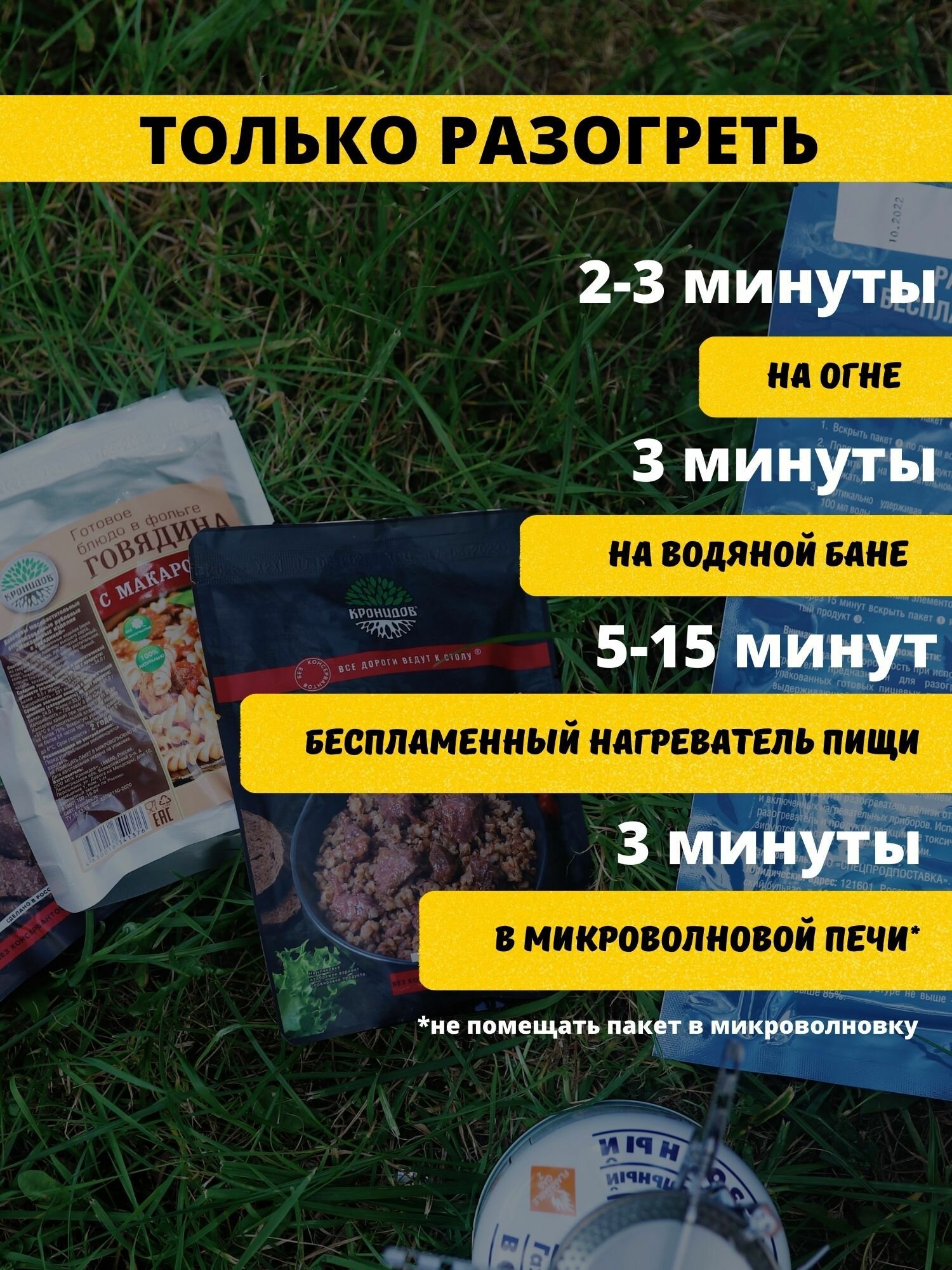 Готовое натуральное блюдо в реторт-пакете "Рис с говядиной" Кронидов Сухой паек для охоты, рыбалки, в поход Набор 6 шт. по 250 гр.