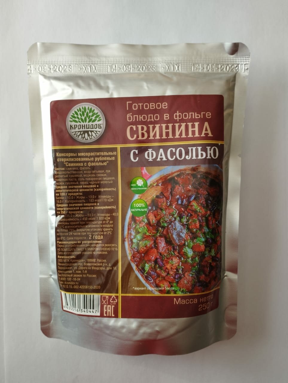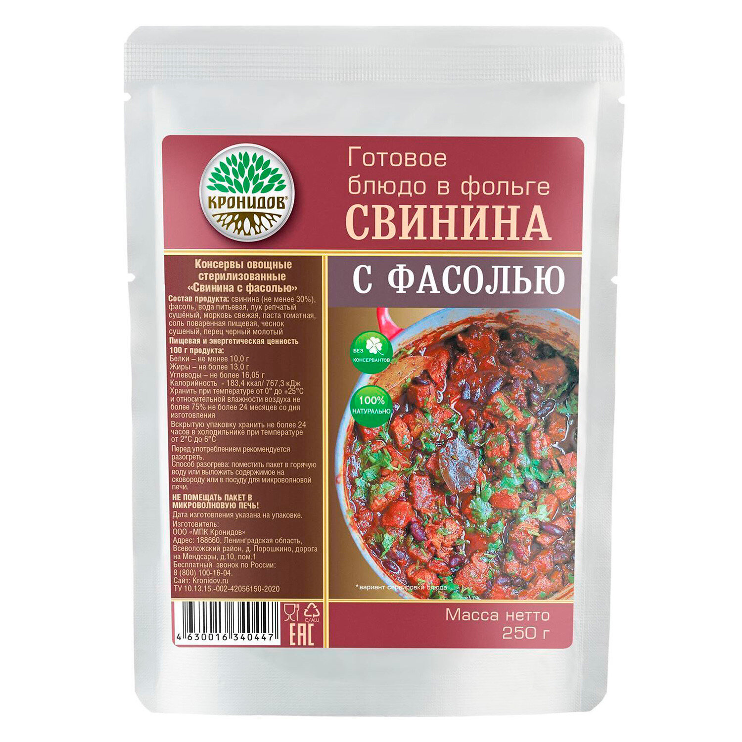Кронидов Свинина с фасолью Готовое блюдо в фольге. Консерва натуральная 250 г
