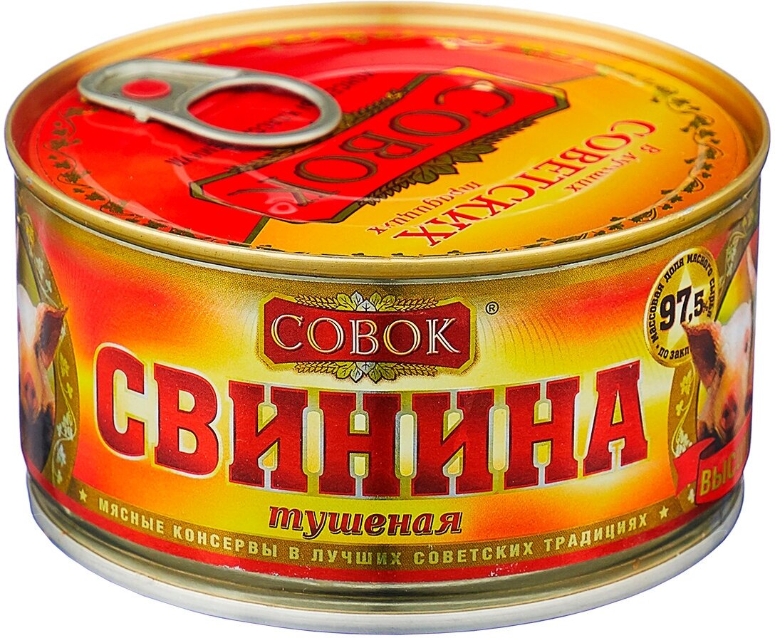 Тушенка "Совок", высший сорт, свинина, ГОСТ, органический продукт, 325 гр