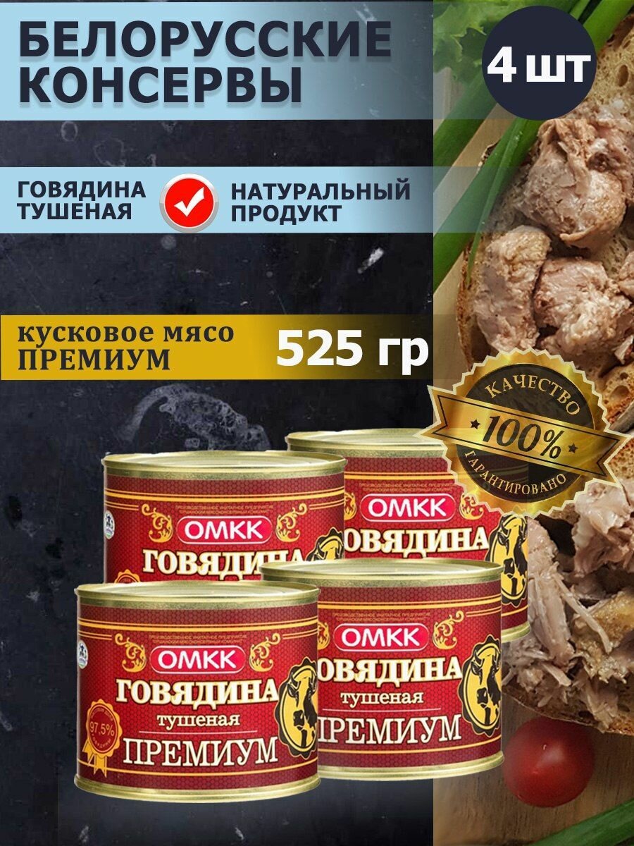 Купить Говядина тушеная Премиум Беларусь омкк 4 шт по 525гр