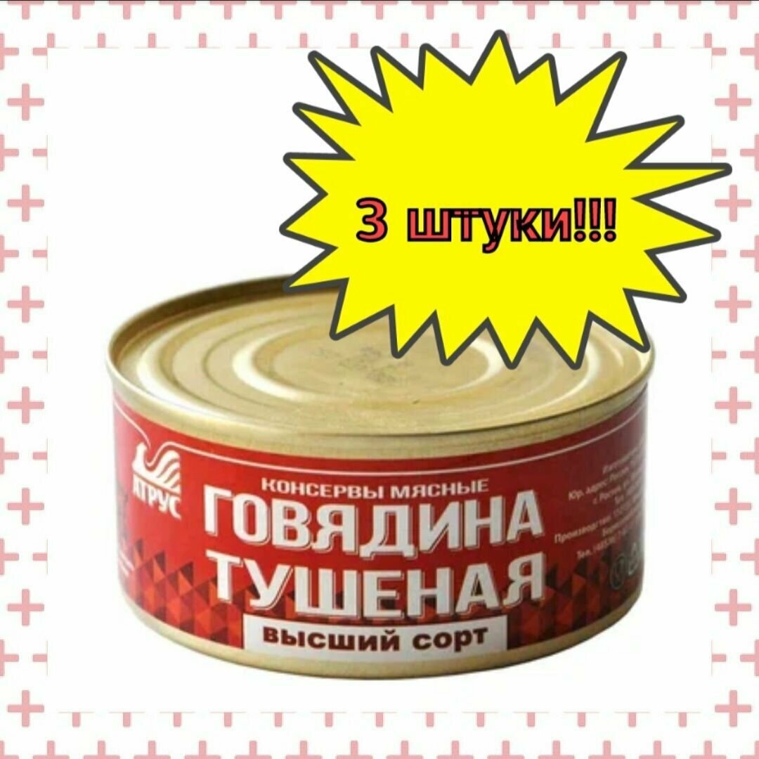 Ниже Вы можете прочитать отзывы на Атрус, Говядина тушеная высший сорт, ГОСТ, 325 г, 3 шт, ознакомится с подробными характеристиками, посмотреть интересные обзоры и фотографии на Атрус, Говядина тушеная высший сорт, ГОСТ, 325 г, 3 шт.