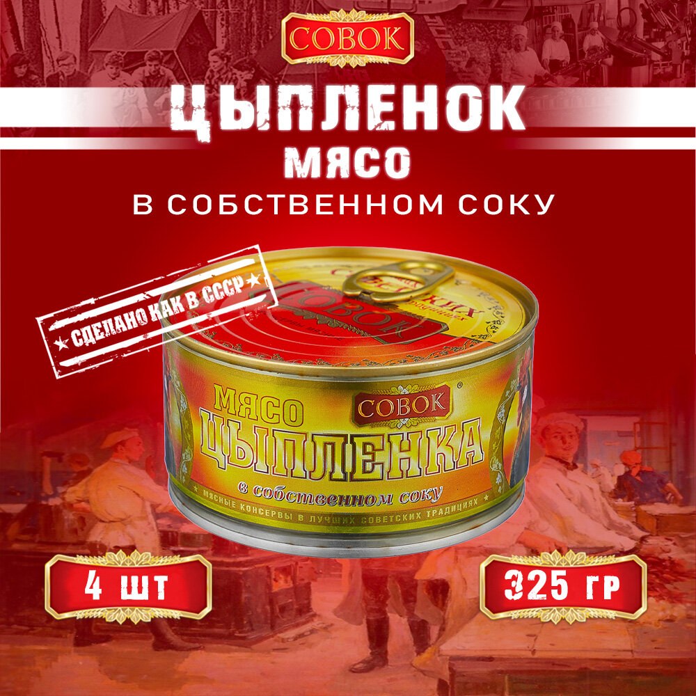 Купить Мясо цыпленка в собственном соку, ГОСТ, Совок, 4 шт. по 325 г