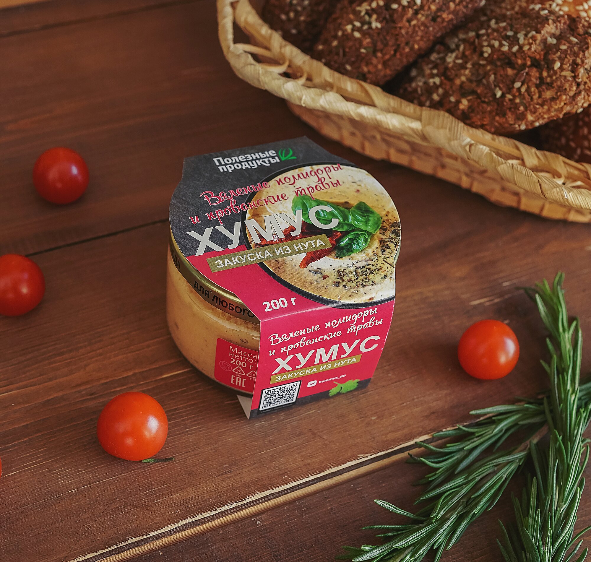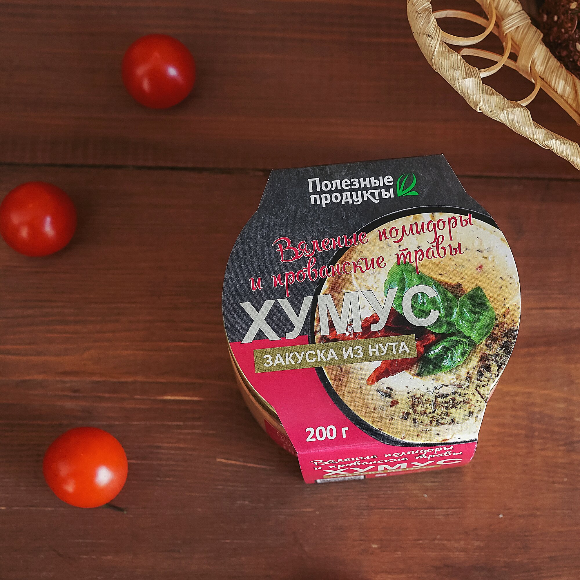 | Состав | нут, вода питьевая,кунжутная паста (тахина), масло подсолнечное, масло оливковое, соль, томаты, чеснок, регулятор кислотности (лимонная кислота), консервант сорбат калия, базилик, петрушка, прованские травы, перец красный молотый. |