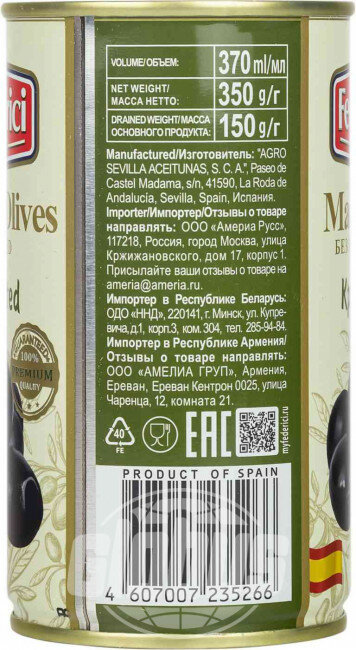 | Состав | вода питьевая, маслины без косточки, соль, фиксатор окраски: глюконат железа |