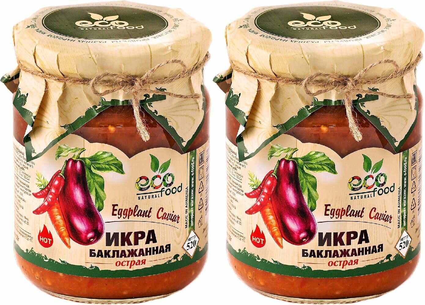 Ecofood Икра баклажанная острая, 520 г, 2 шт интересное: