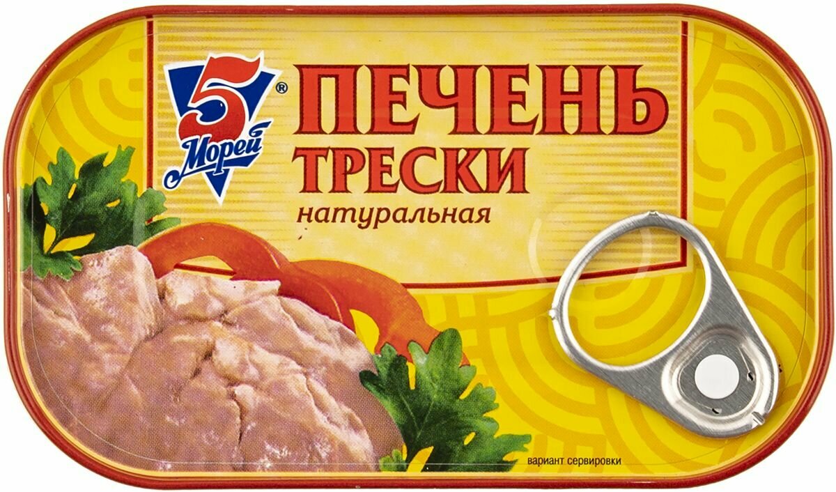 Консервы рыбные "5 Морей" - Печень трески атлантической натуральная, 120 г интересное: