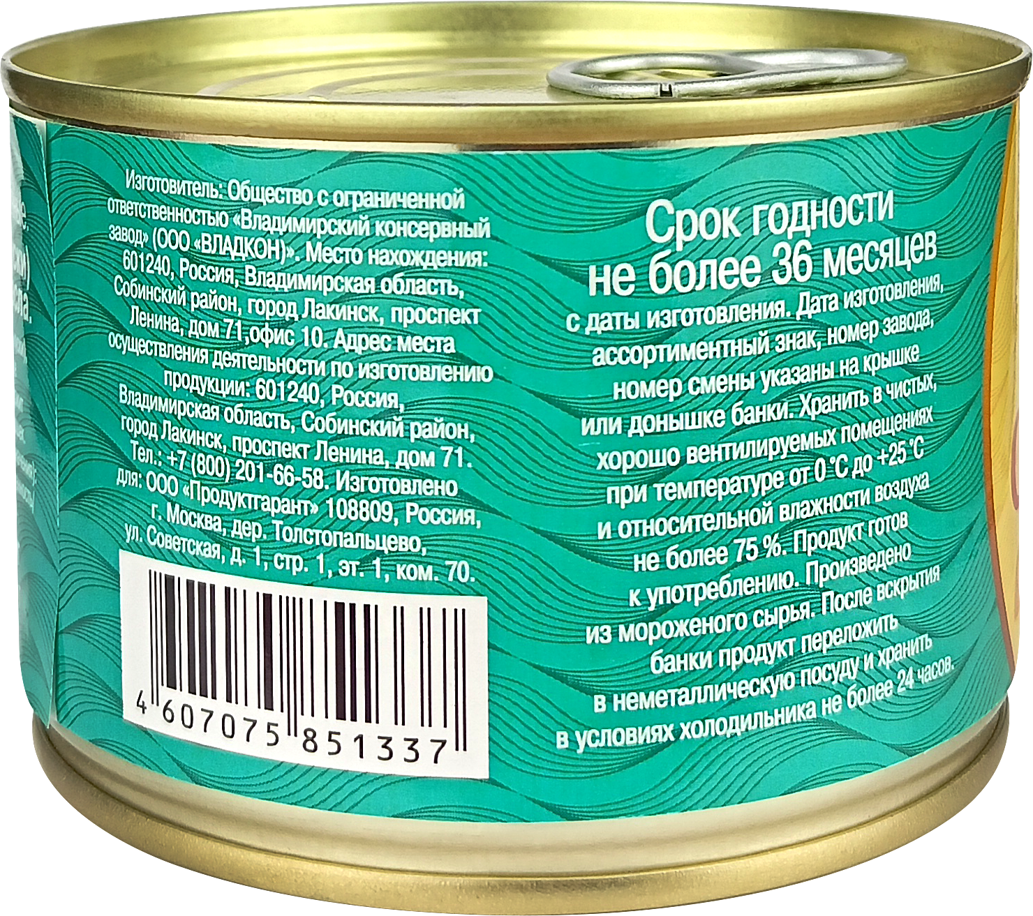 | Состав | Скумбрия атлантическая, масло растительное, соль, перец, душистый горошек |