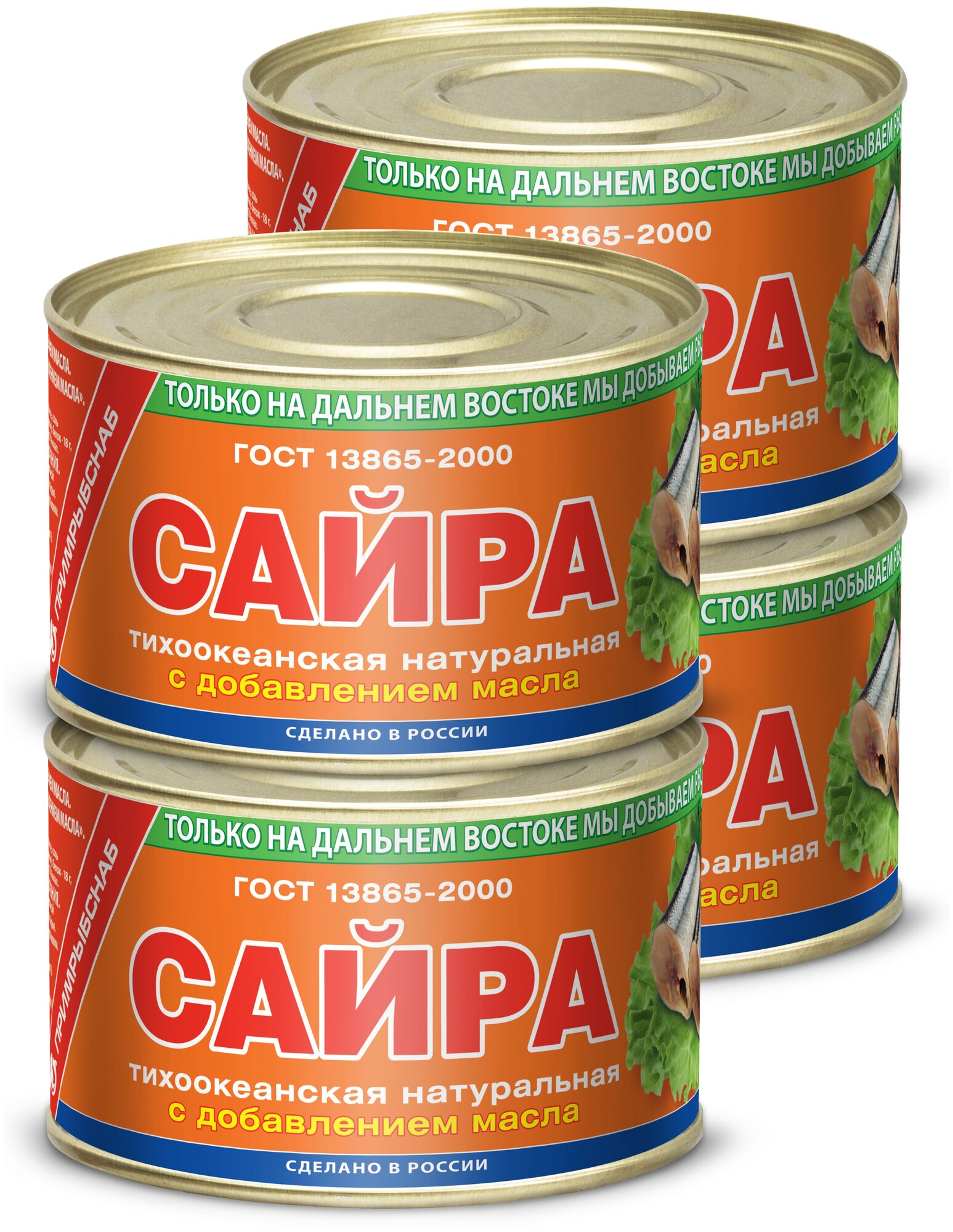 Купить Консервы рыбные "Примрыбснаб" - Сайра натуральная с добавлением масла ГОСТ, 250 г - 4 шт