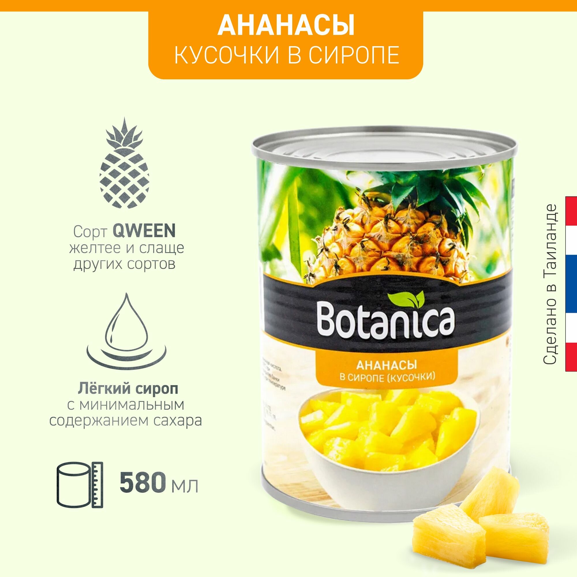 Купить Ананасы консервированные, кусочки в сиропе, Botanica, 580 мл