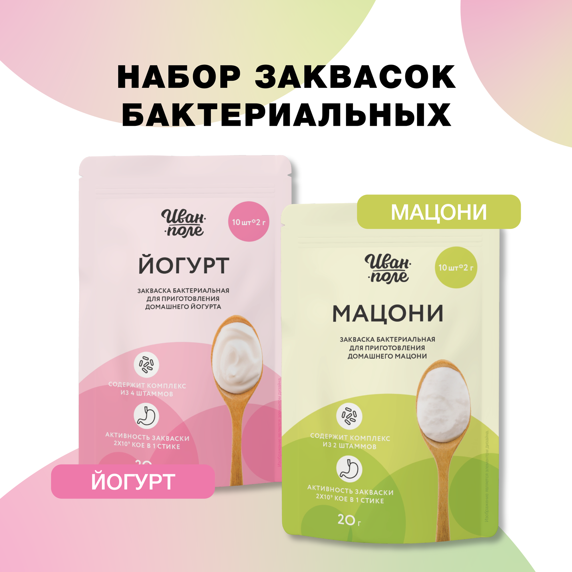 Закваски набор Йогурт + Мацони, 20 порций по 3 г, сухая бактериальная, Иван-поле