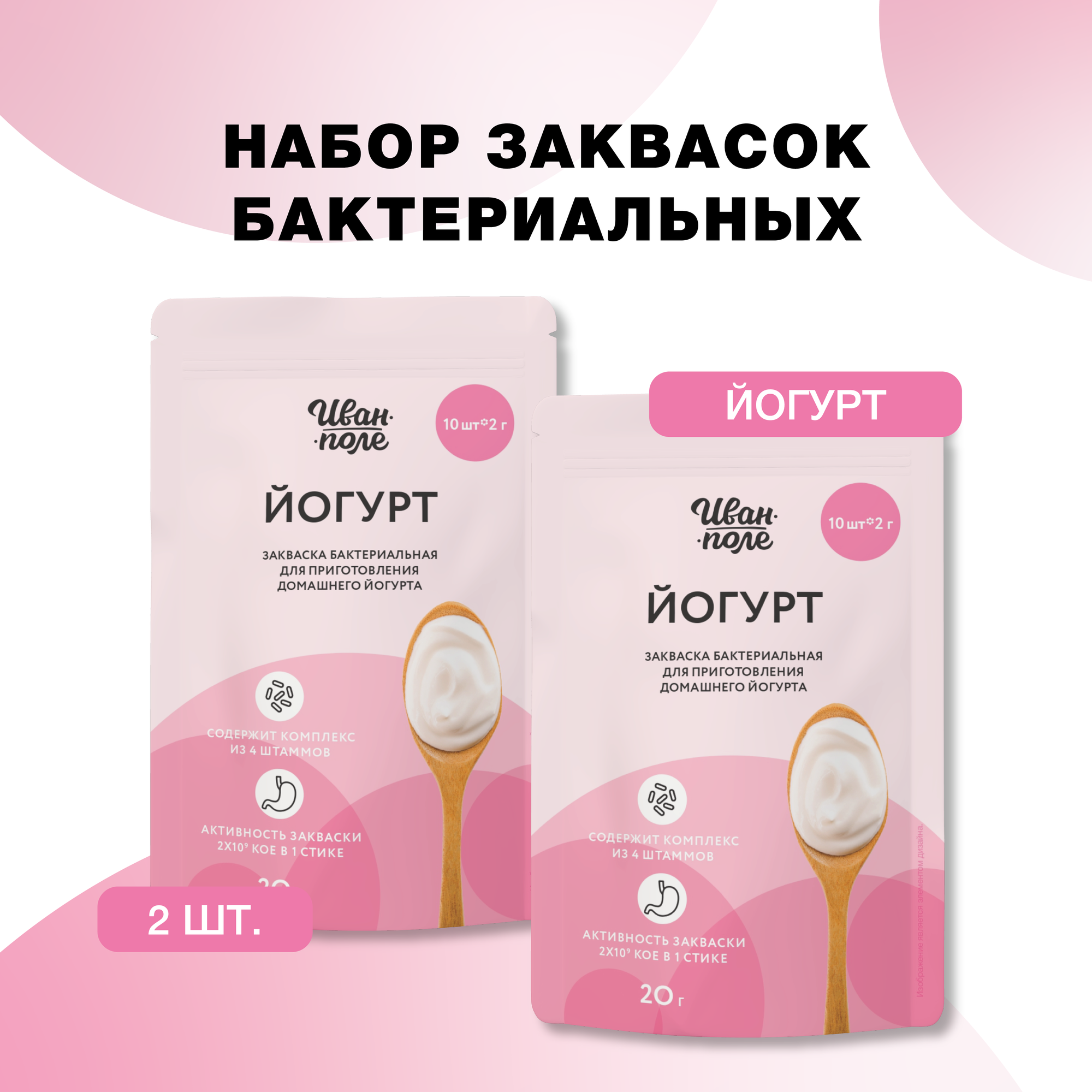 Набор 2 шт закваска для Йогурта, 20 порций , сухая бактериальная, Иван-поле интересное: