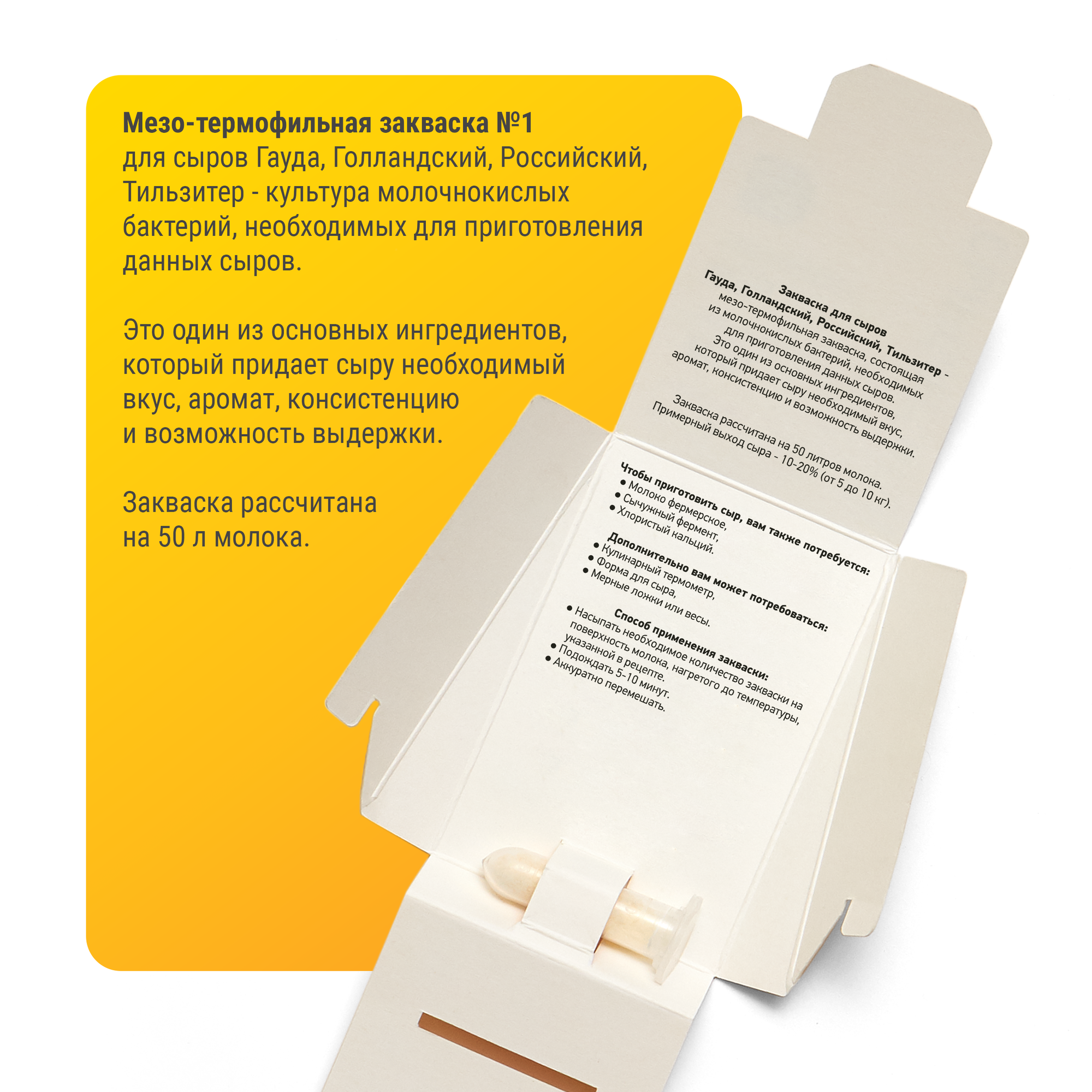 Купить Закваска для приготовления сыра Гауда, Голландский, Российский, Тильзитер на 50 л, №1
