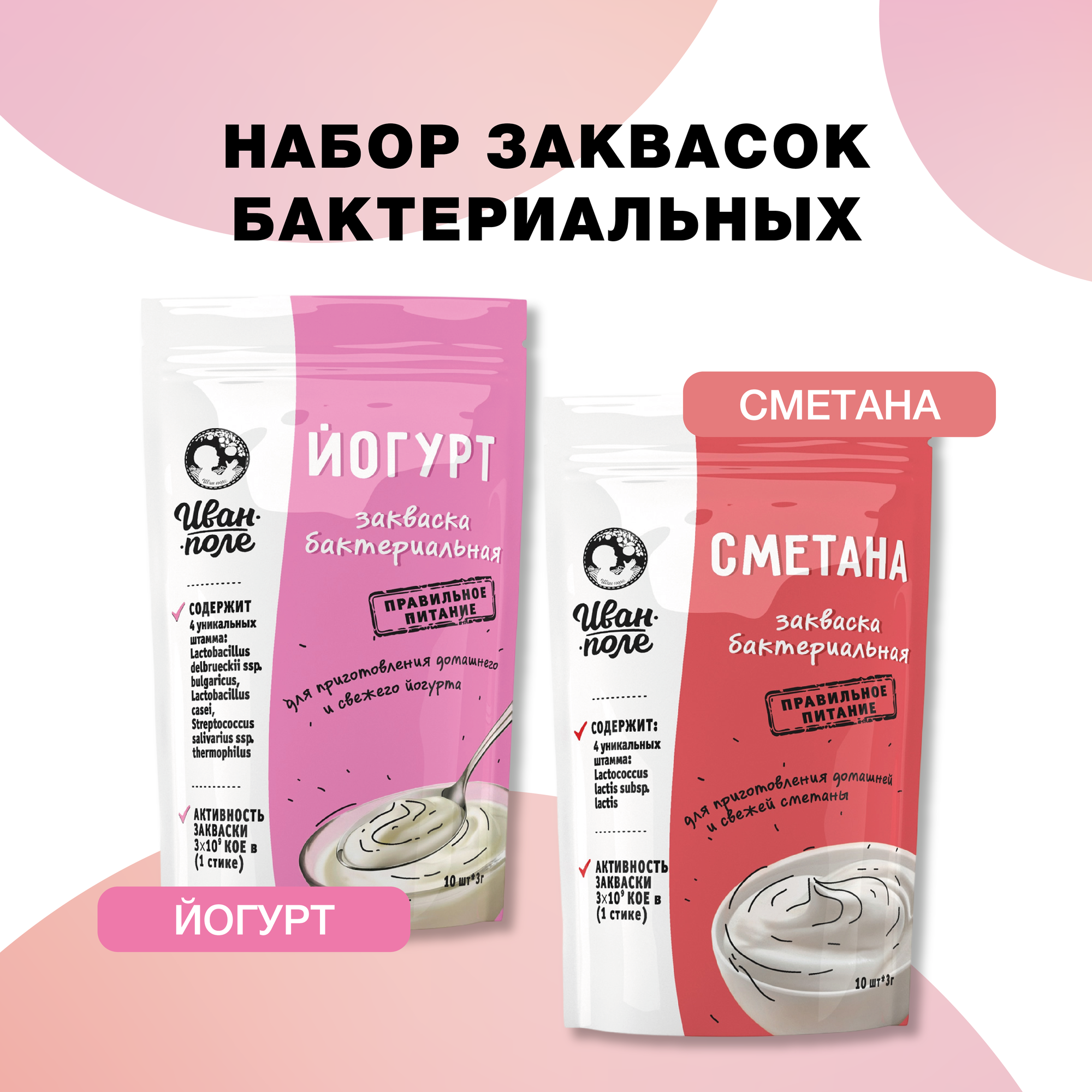Закваски набор Йогурт + Сметана, 20 порций по 3 г, сухая бактериальная, Иван-поле