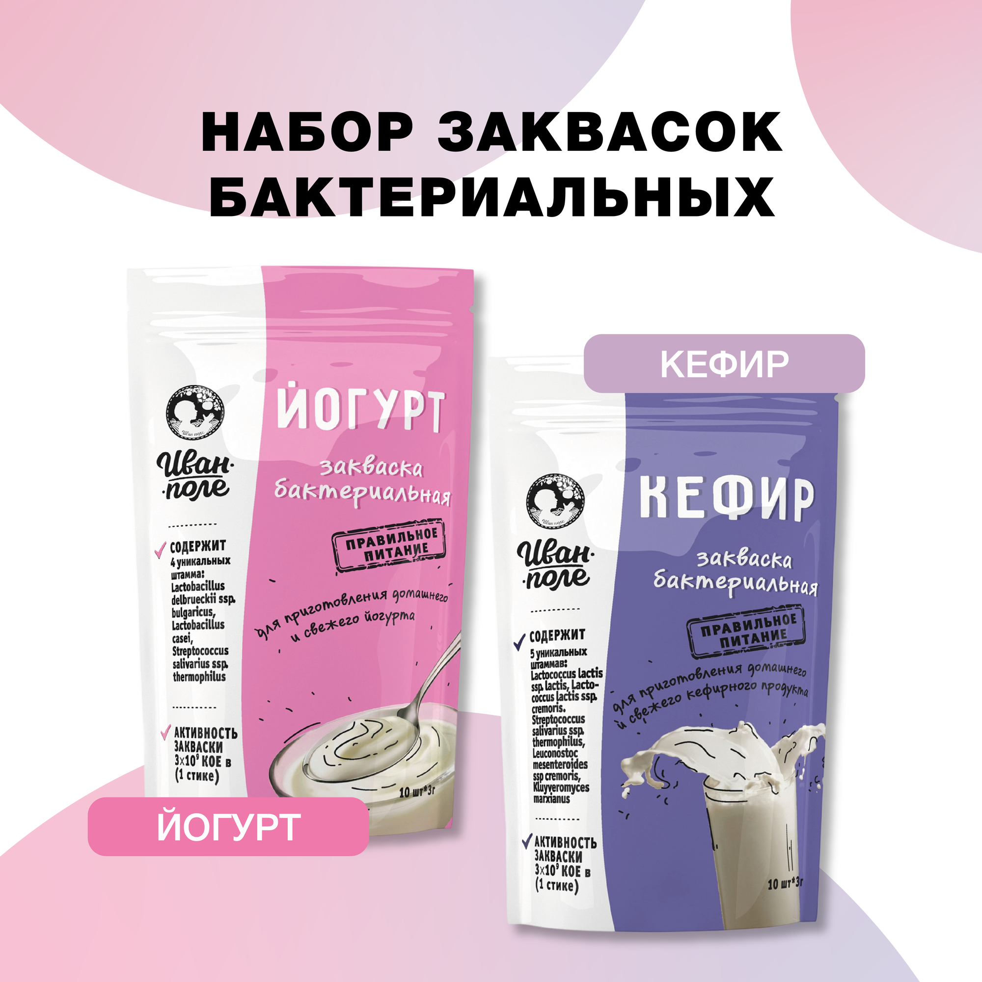 Закваски набор Йогурт+Кефир, 20 порций по 3 г, сухая бактериальная, Иван-поле