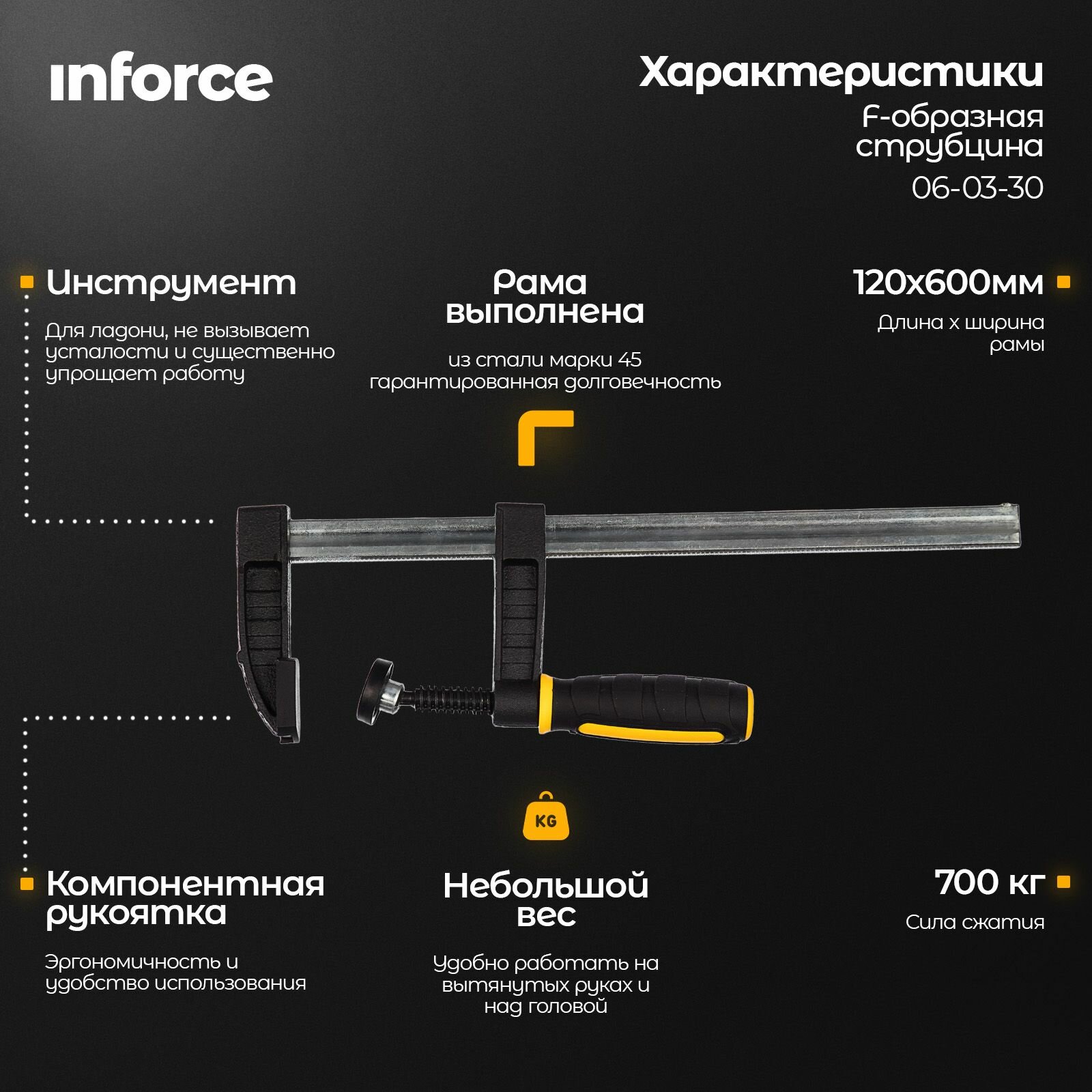 Купить Inforce усиленная струбцина F-образная 120х600мм 06-03-30