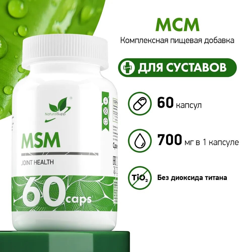 Купить МСМ Метилсульфонилметан 700 мг / Для суставов / От отеков и циркуляции крови 60 кап. NaturalSupp