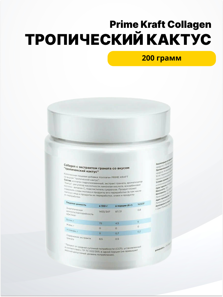 Коллагеновый препарат Prime Kraft для укрепления суставов и связок, 200 г (Тропический кактус)
